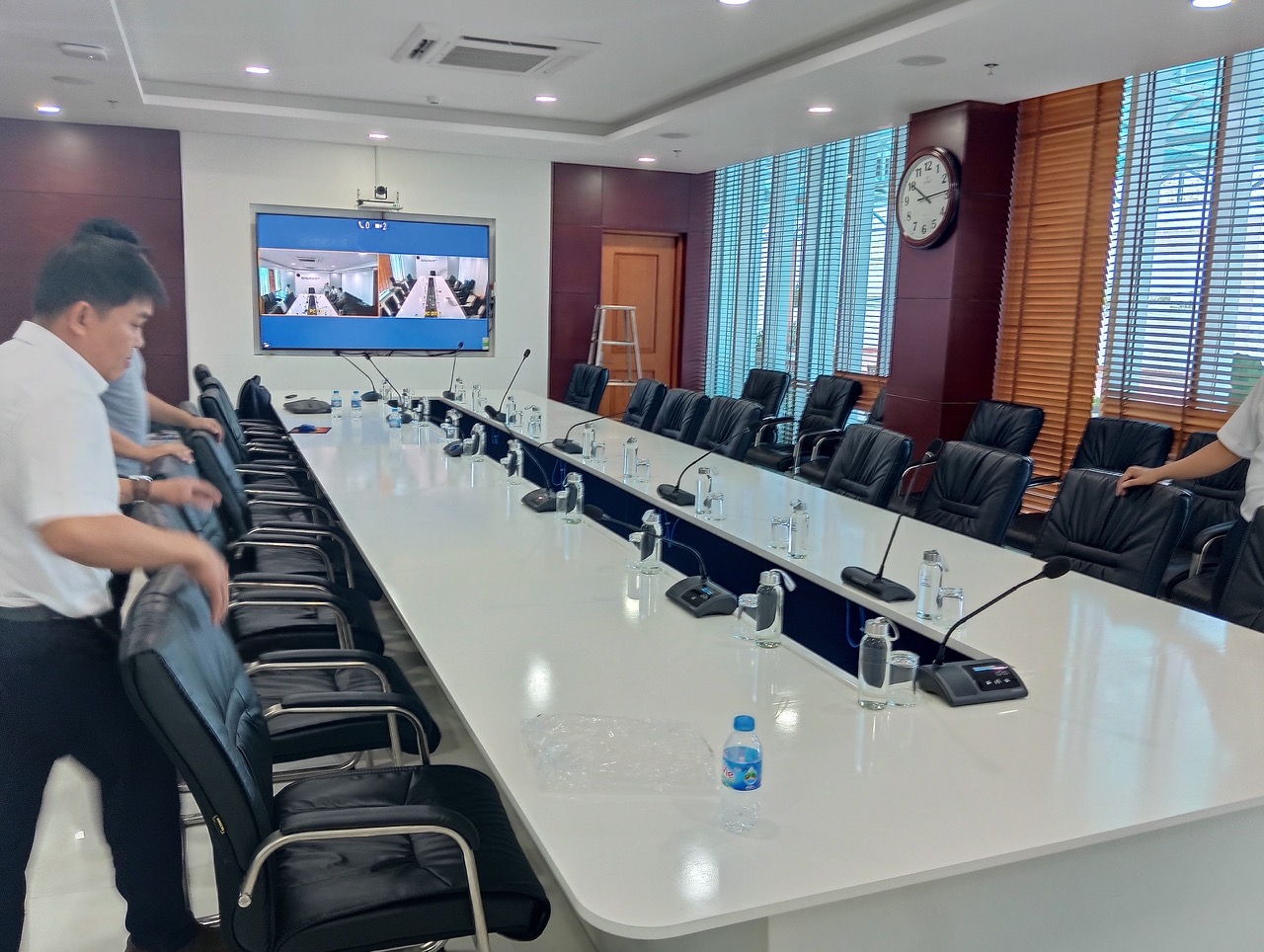 Phòng họp được trang bị đầy đủ các thiết bị hiện đại, đáp ứng tiêu chuẩn kỹ thuật cao và phục vụ tối ưu cho nhu cầu họp trực tiếp cũng như họp trực tuyến: